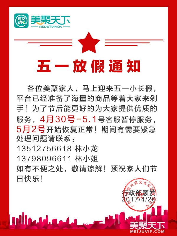 五一放假通知